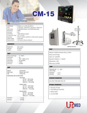 Multi Parameters Patient Monitor CM-15 UPMED - Best Quality CM-15 Patient BP ECG SPO2 Etc Monitors - Patient Monitors in Pakistan